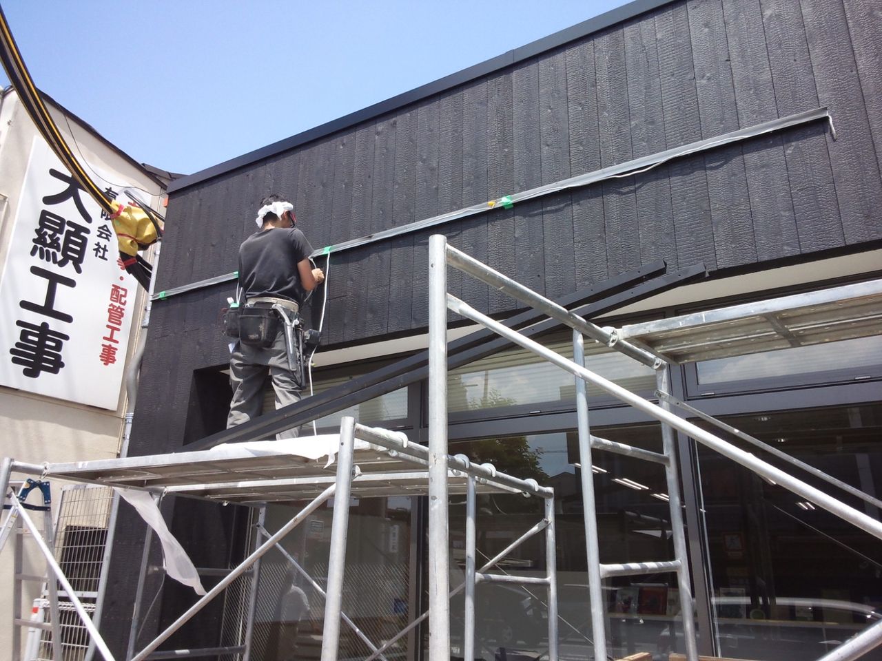昼頃こちらの現場で看板の取り付け↓
