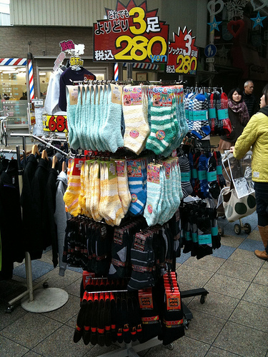 激安の衣類が売ってました。靴下3足で税込280円。↓