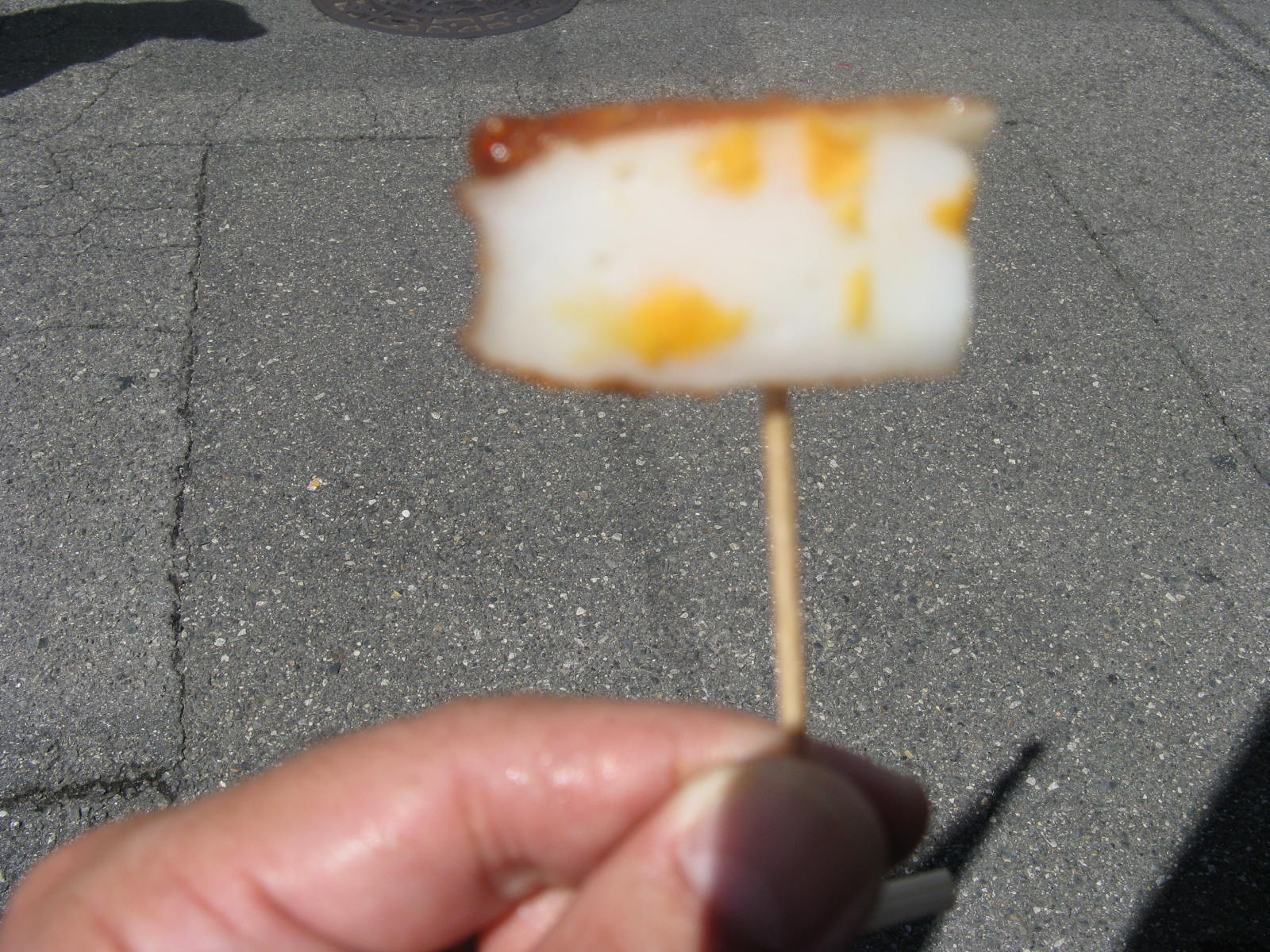 と聞いてきたので、もちろんその場で食べます!と言ったら おかあさんが、竹の串にきちんと刺してくれました。