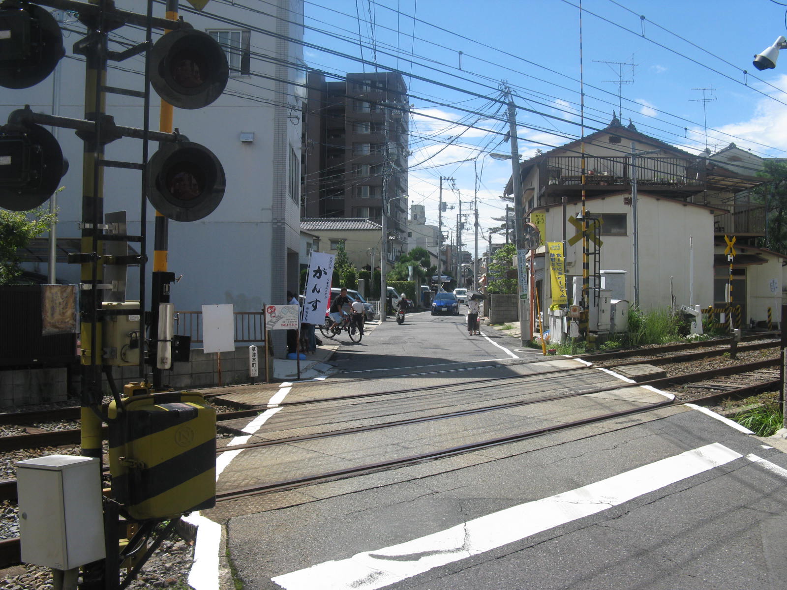 広電の踏切を渡ったらすぐ何やら人だかりが。