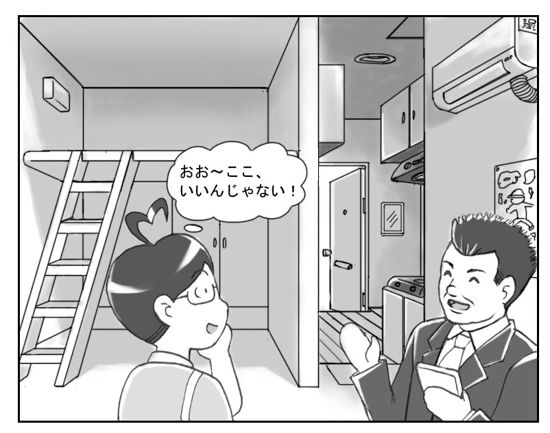 最後に、やっと学校から徒歩5分、駅から10分の場所に気に入れる部屋を見つけた