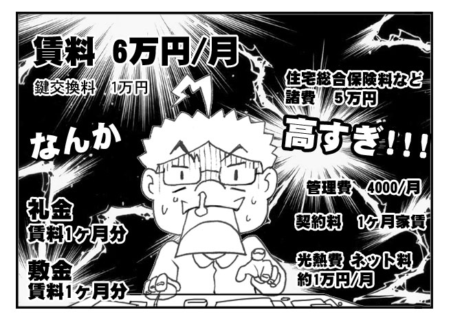 前に全然知らなかったが、東京で6帖の部屋を賃借ったら、一ヶ月諸費総計約7万円、頭金が23万以上!