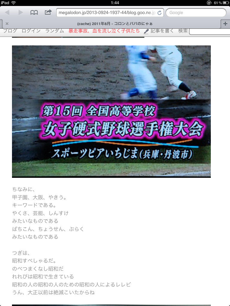 一般市民(野球少年など)を盗撮しブログでゴキブリ扱い