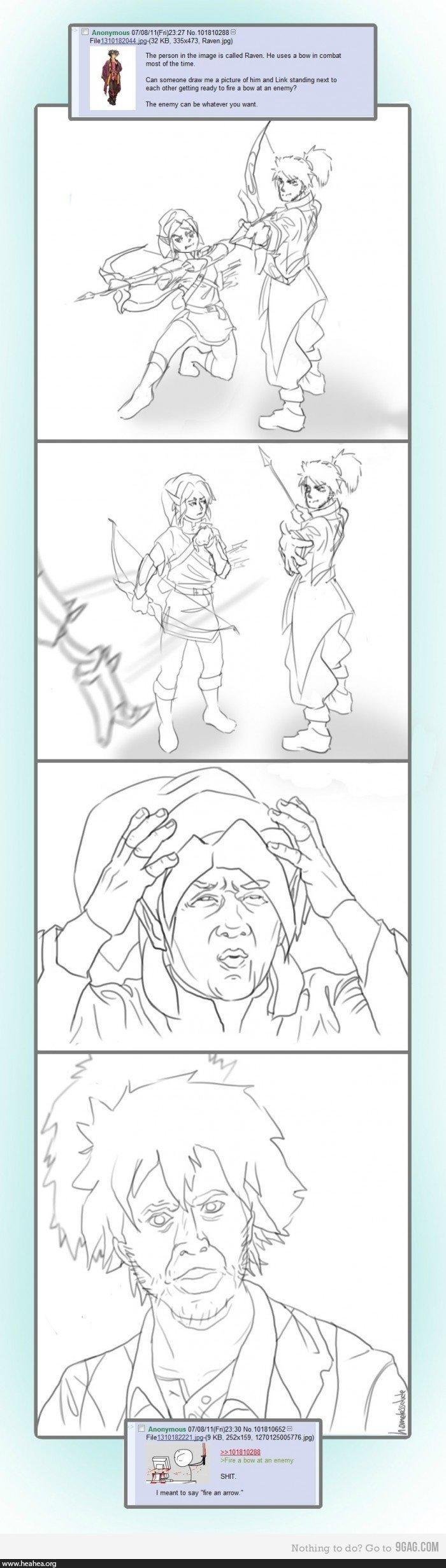 一番上「誰かRavenってキャラがリンクと隣同士に立って敵に弓を放ってるイラストを描いてください!」