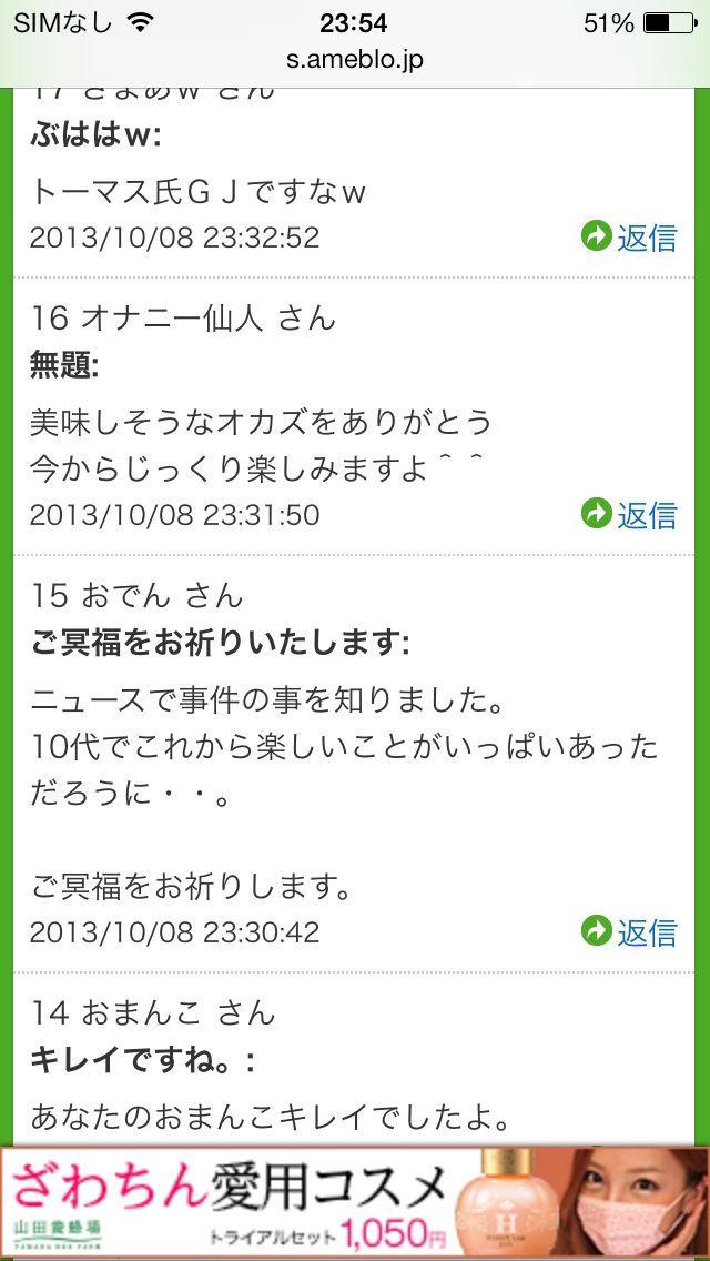 嫌儲民が殺された三鷹女子高校生のブログに突撃、死体蹴りを始める