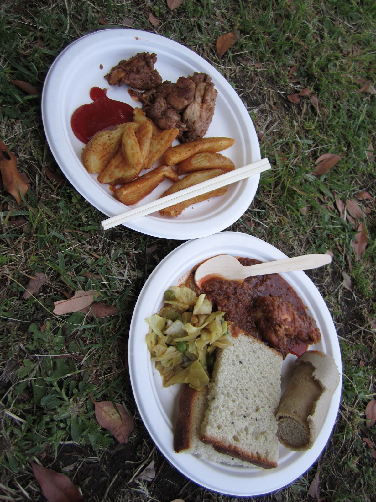 on the lawn in the sunshine with some Ethiopian foods.
