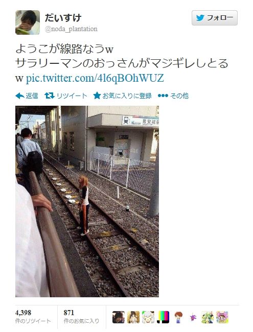 【Twitter】 「サラリーマンがマジギレしとるw」 DQN少女が線路に立つ画像が公開され炎上
