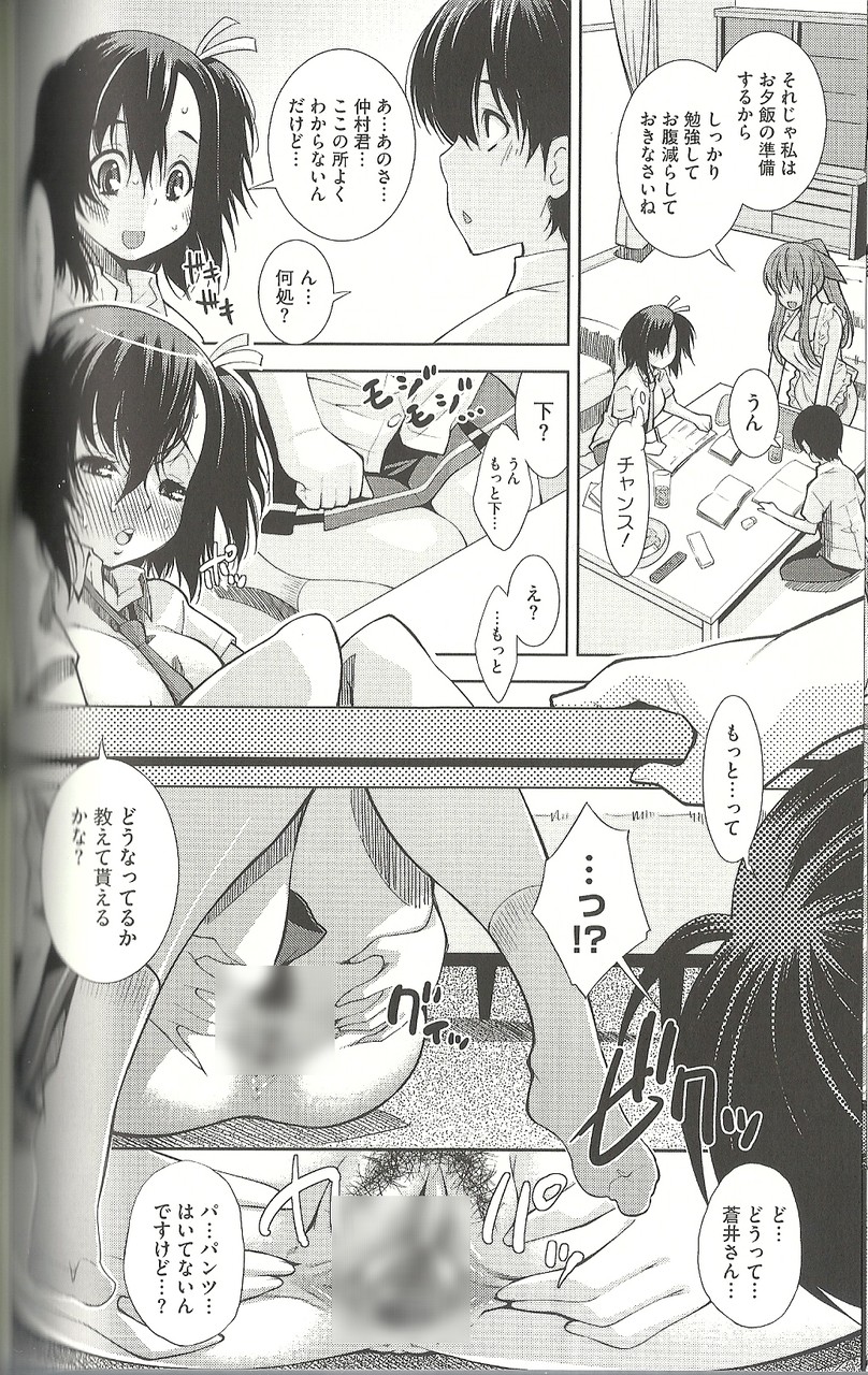 お姉ちゃんにばれないように机の下で弟を誘惑する。机の下を見たらくぱぁって、エロ過ぎや!