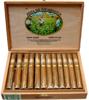 1本売り 105mm ニカラグア 280円 昔の製法をかたくなに守り、ノーカットのロングフィラーを完全手巻きで、当時をしのばせる可愛い杉の小箱に入れて出荷されています。フィラー、バインダーにはニカラグアとホンデュラスのスパイシーな部分を使い、ラッパーにはエクアドルの高級シェイドグローンリーフを用いています。 |
