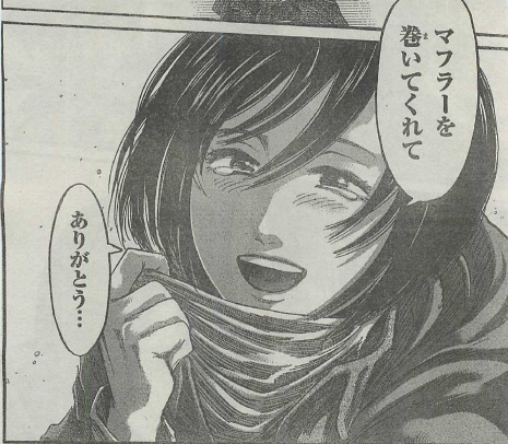 マフラーを巻いてくれてありがとうのミカサの顔が かわいくないのが悲しい