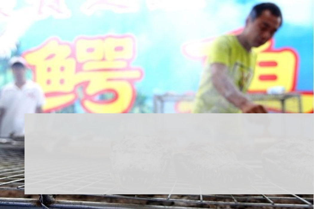 中国でワニの丸焼きBBQをしている様子です。丸焼きにされています