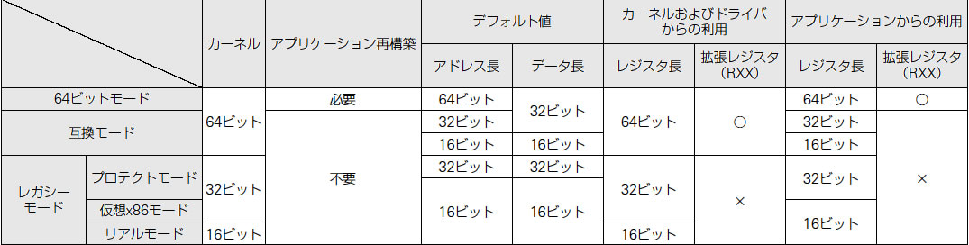 主な64ビット対応プロセッサの物理アドレス範囲