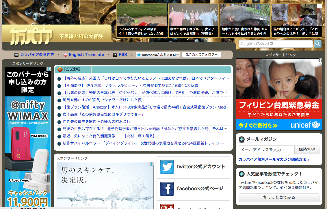 生き物系の面白ニュースを拾ってくれる「カラパイア」もlivedoor Blog。