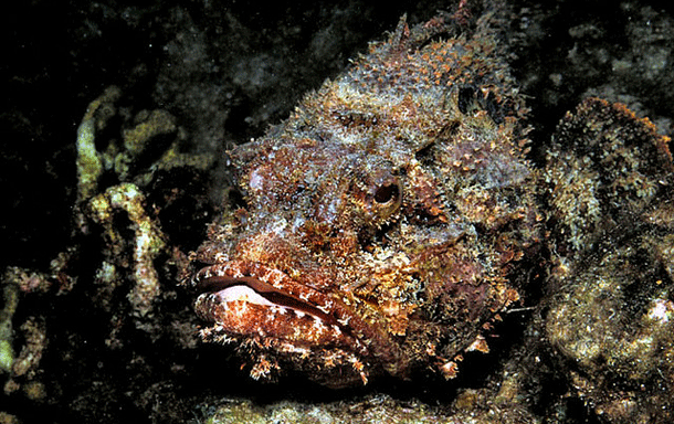 オニダルマオコゼは背びれに強力な毒を持つ非常に危険な魚類として知られている。