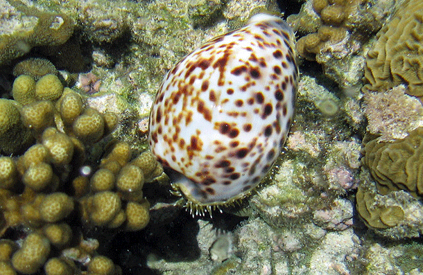 多くの人は海の中でこの貝をみると、綺麗であるために手で拾ってしまい、刺されてしまうことが多々ある。