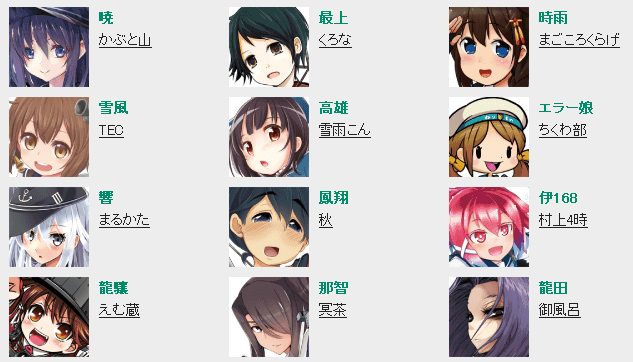 ※キャラ選に関しては各提督から頂いた希望娘3人の中から決めてます。