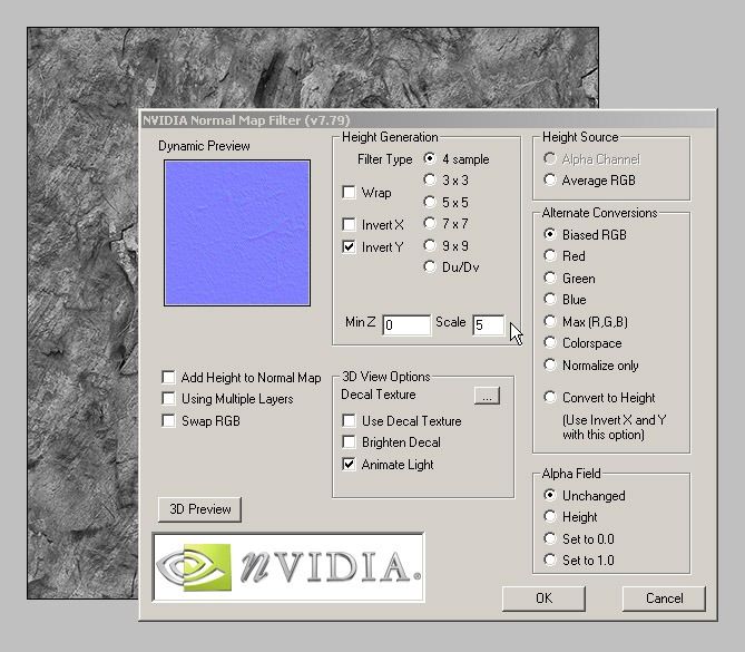 ノーマルマップは X軸成分をRカラー値、Y軸成分をGカラー値に置き換えて ポリゴン上のポイントではテクスチャのRカラー値によって法線はTangent方向へ傾くように計算され Gカラー値によってBinormal方向に傾くように計算されます。 それによってポイントあたりの法線方向が歪められてライト計算に反映されると凹凸が表現できるという仕組みです。