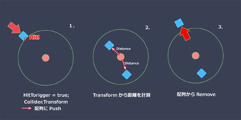 トリガーから敵が離脱した時に、その敵の情報(IDやTransform)をリムーブすることで効率よく索敵ができます。