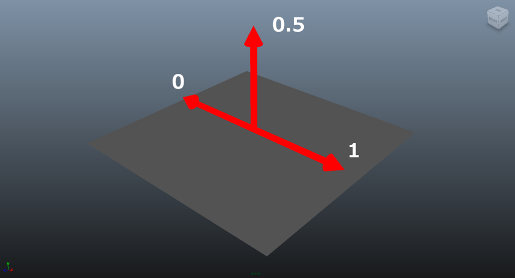 図のようにノーマル法線方向をZ軸 ポリゴンのUV空間 U方向をX軸 V方向をY軸と見立てます。