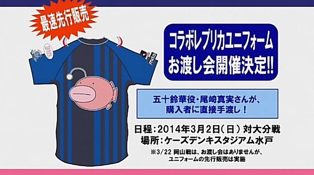 3月2日(日)に行われる2014 Jリーグディビジョン2 開幕戦 水戸ホーリーホックvs.大分トリニータ戦での販売会場では五十鈴華役の尾崎真実さんによるユニフォームお渡し会を実施。