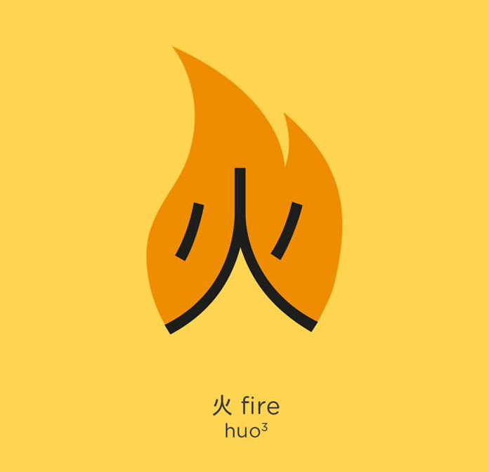 漢字圏の人にとって初歩的な漢字の「火」を見たら自然に頭の中に