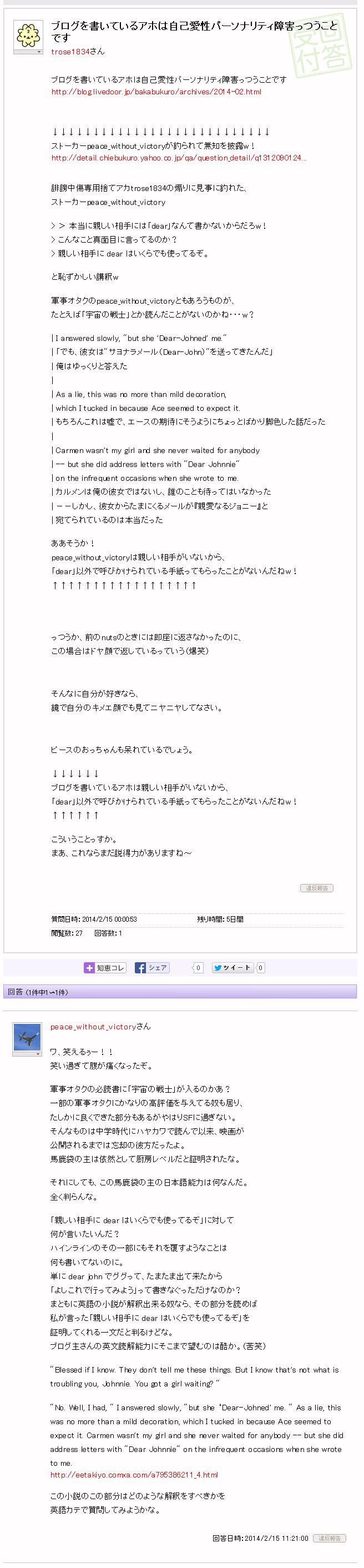 必死になってストーカーpeace_without_victoryを煽ってるw