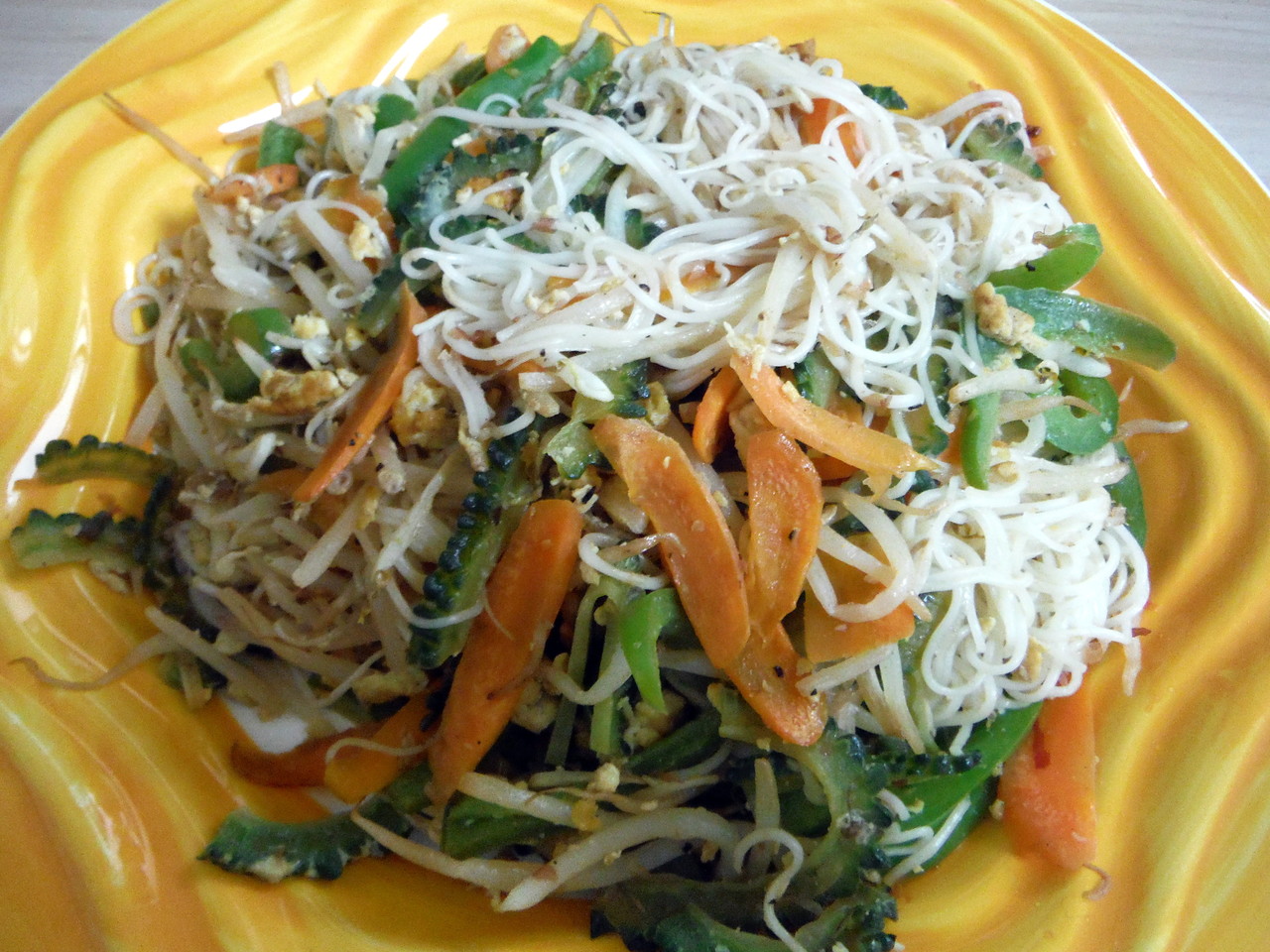 具材は、ゴーヤ、人参、もやしです