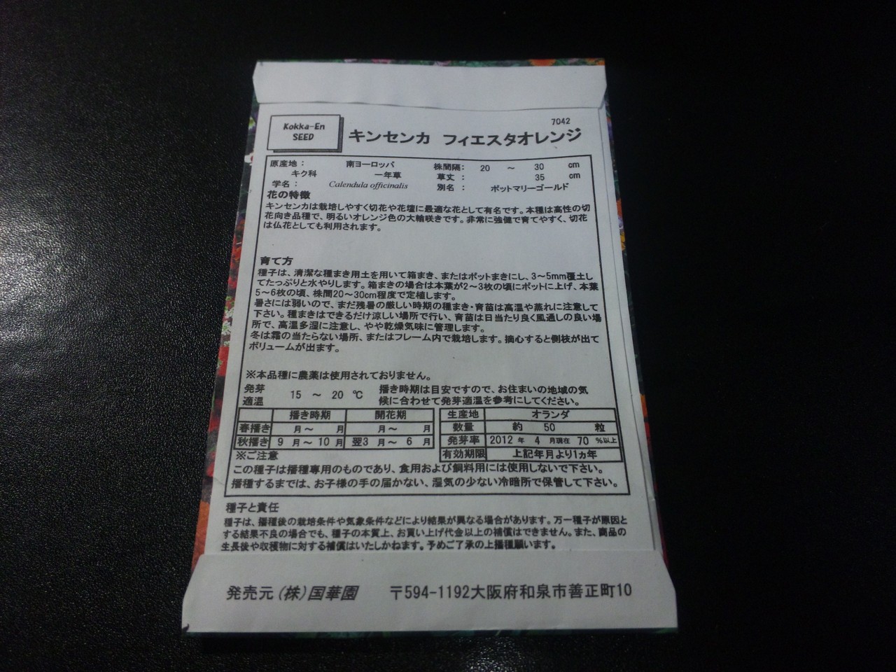 今回は、『キンセンカ フィエスタオレンジ』の種を蒔くことにしました…って、フィエスタってそもそも何よ? フィエスタオレンジという色の名称みたいだけれど…。