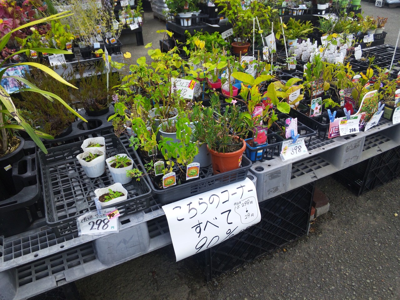 で、「こちらのコーナーすべて90%OFF」なんて書かれているコーナーがありましてですね、シーズンが終わったとはいえ、大切に育てたら、おそらくは元気に育つのではないか、とは思うんだけれど…