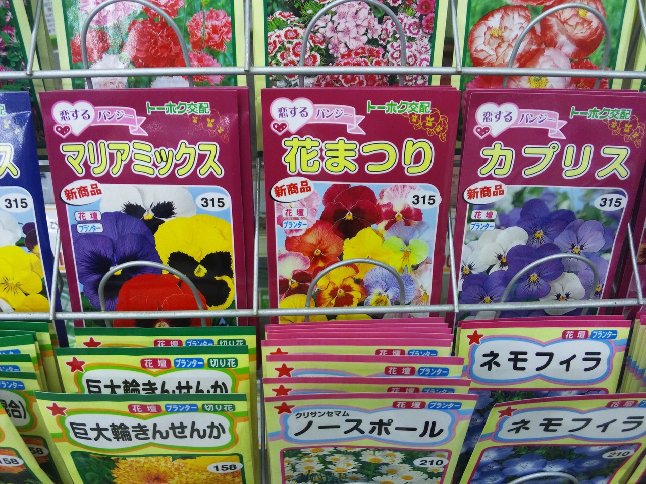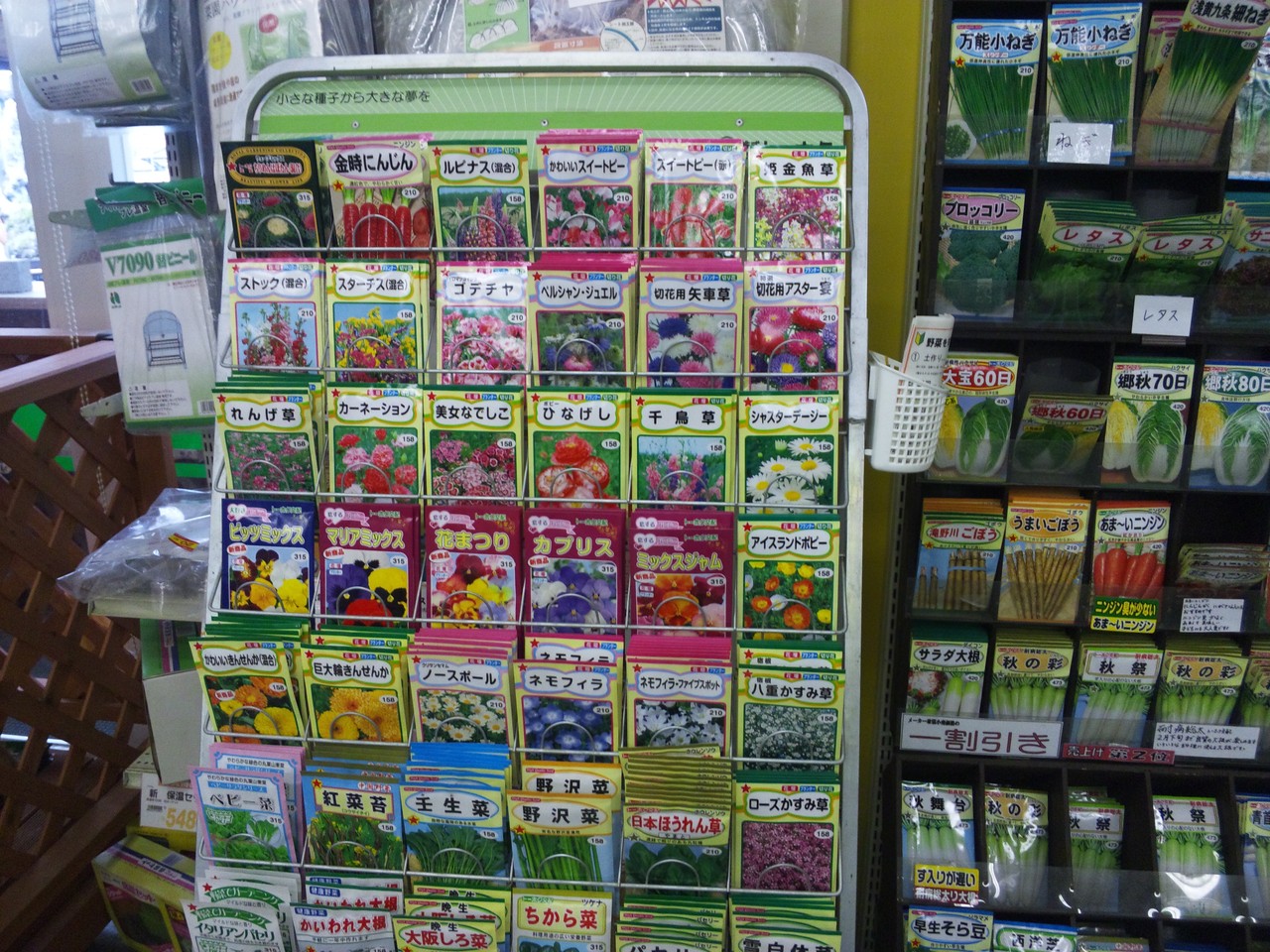 パンジーの種も、私が持っていない色のものもありまして…買おうかな、と思ったりもしたんですけれど、自宅にパンジーやビオラの種が複数あることだし、今日は見送ることにしました。