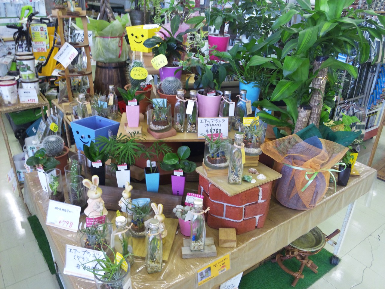 さて、店内に入ってすぐのところには、観葉植物などが展示されておりまして、すでにアレンジメントされているものが多々。