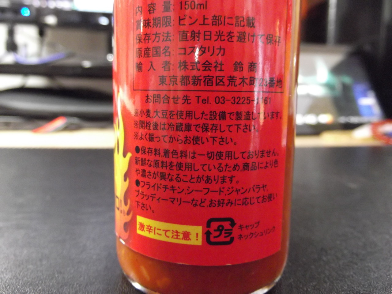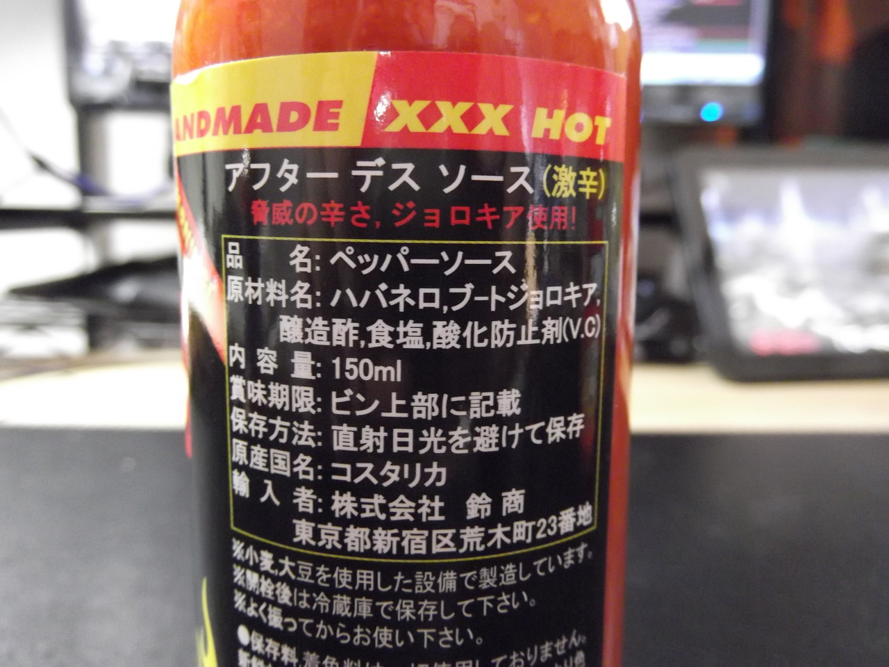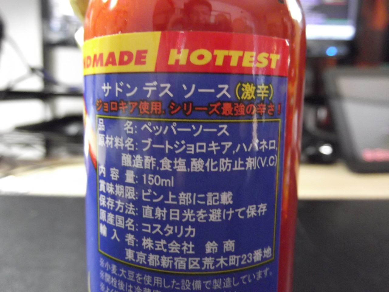 今のところ、日本で正規輸入されているデスソースの中では、これが一番辛いらしい。