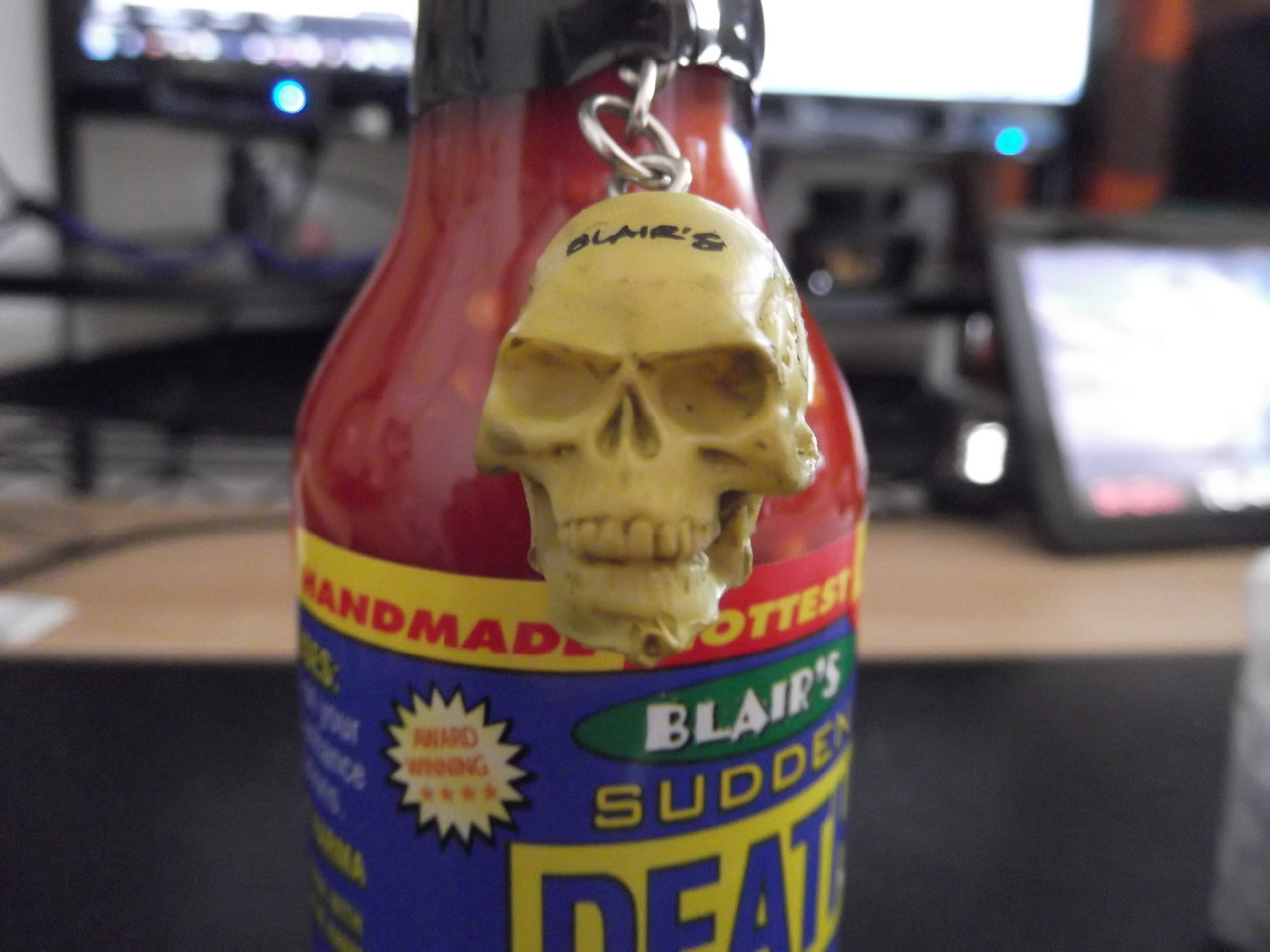 瓶には、どくろのキーホルダーつき…。