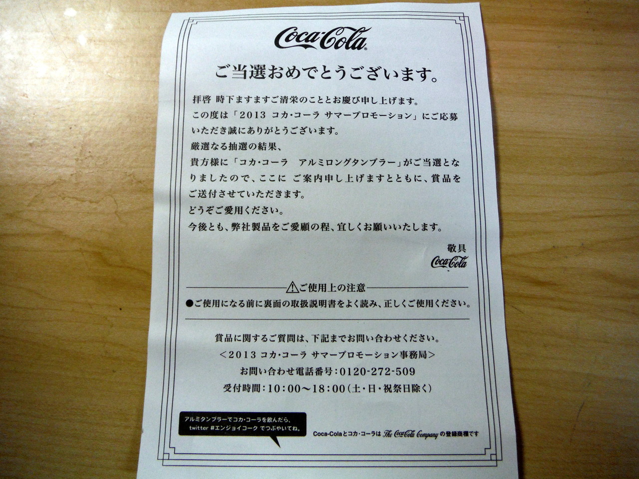 コカ・コーラでコカ・コーラ アルミロングタンブラーが当たったよ!http://t.co/z3Z3EcOgex オリジナル賞品が総計30万名に当たるキャンペーン実施中!コカ・コーラをあけて最高の夏を楽しもう!#opensummer/ http://t.co/3SSxsKmjx9