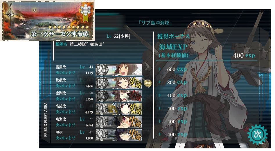 イベ前だったから、金剛型2・重巡2・駆逐2 でやった