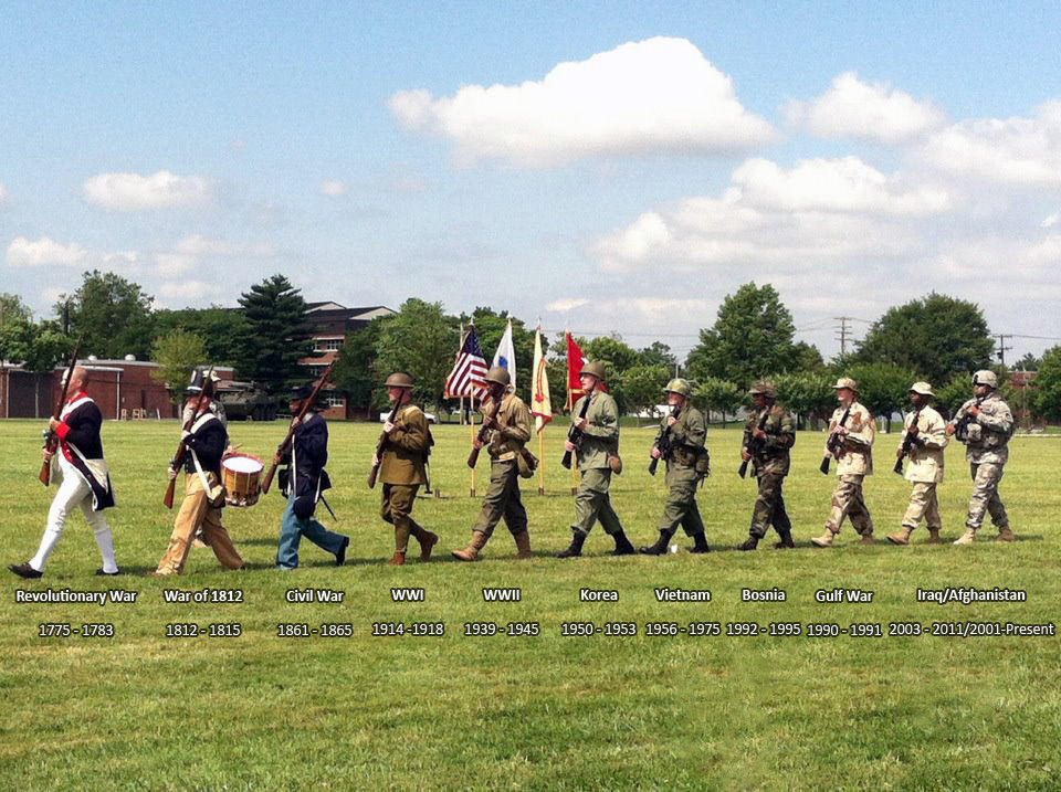 ↑独立戦争、1812年の戦争、南北戦争、第一次世界大戦、第二次世界大戦、朝鮮戦争、ベトナム戦争、それから