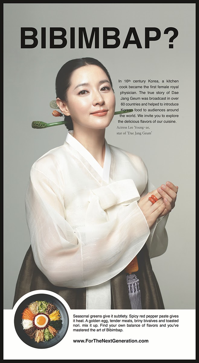 추신수 선수와 뉴욕타임스에 불고기 광고를 올렸습니다. 올해부터는 고기류에 더 집중하려구요. 특히 이제부턴 대한민국을 대표하는 세계적인 스포츠스타와 함께 한식을 널리 알려볼 생각입니다. 또한 이영애와 무한도전의 비빔밥광고,김윤진의 김치광고, 송일국의 막걸리광고 등을 묶어 '한식아트북'을 제작해 조만간 전세계 주요도서관에 다 기증할 예정입니다. 우리의 한식이 세계인들의 입맛을 사로잡는 그날까지 쭉~^^