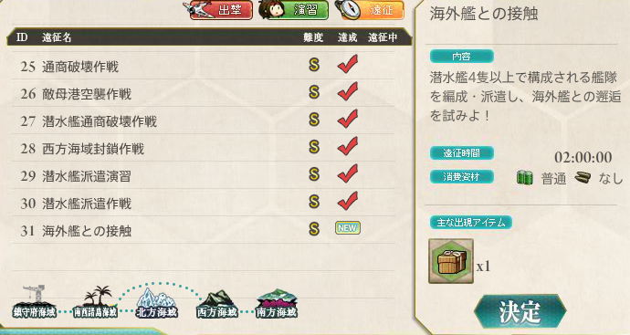 遠征「潜水艦派遣作戦」を数度達成すると、