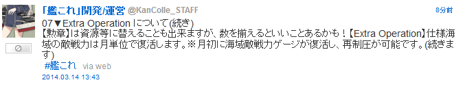 【Extra Operation】仕様海域の敵戦力は月単位で復活します。