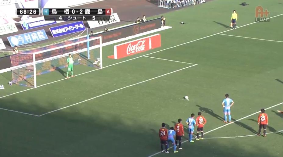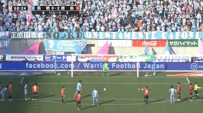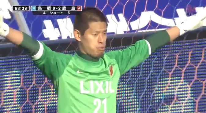 ここでGK曽ヶ端は完璧な読みで鳥栖FW豊田のPKをストップし、ピンチを切り抜けました。