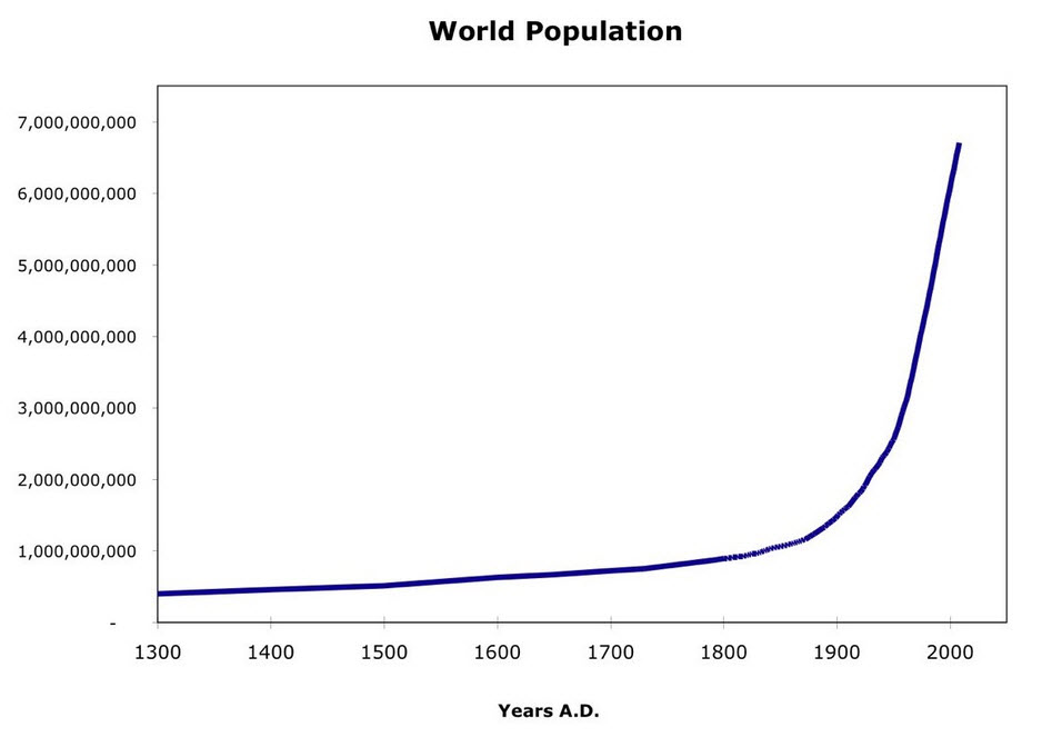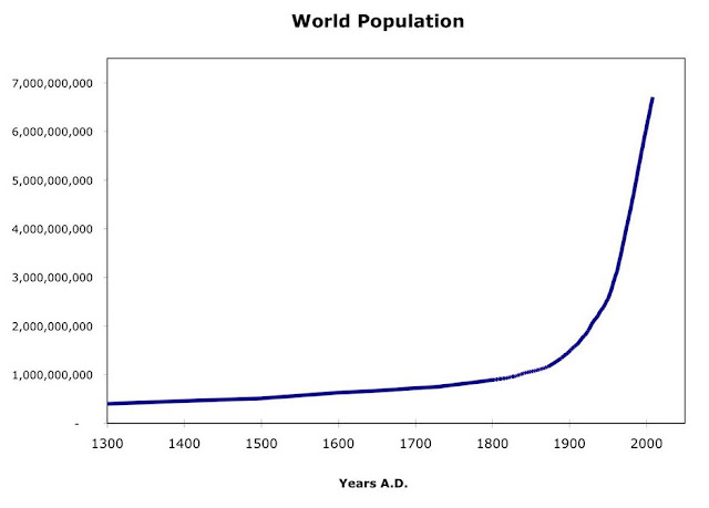 二十世紀初めの世界人口は二〇億(正確には16~7億人)で、今は七〇億は間近というのもグラフにすると、驚くべきことが二十世紀に起こったのが今更ながら強い感慨を生む。