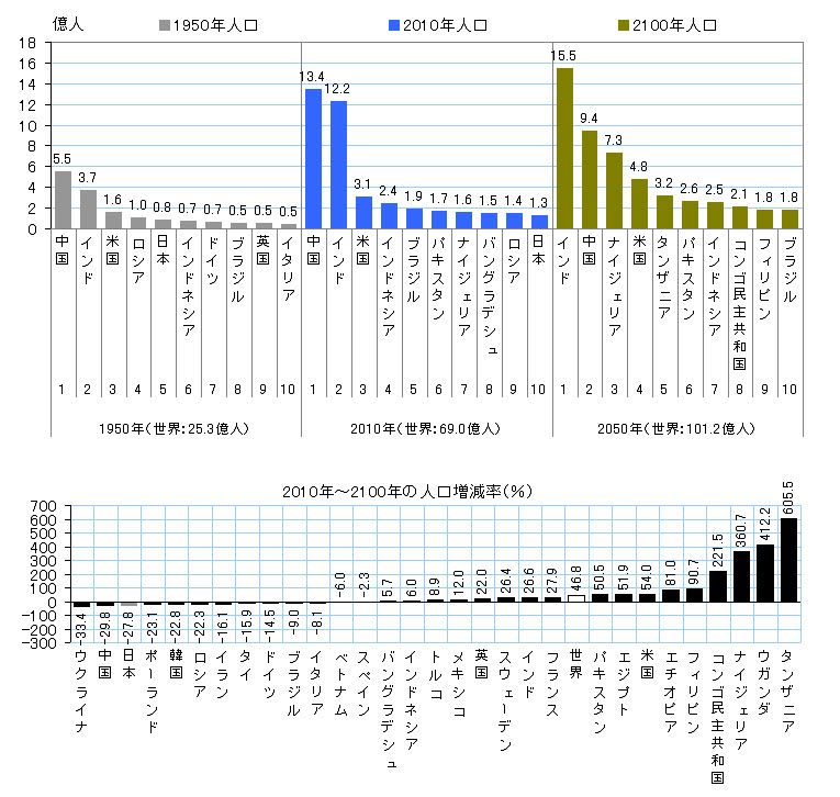 ナイジェリアってのは、2050年(いや、この図表にも2050年なのか、2100年のか判然としない記述があるが、たぶん後者だろう)には世界第三位の人口となるのだな