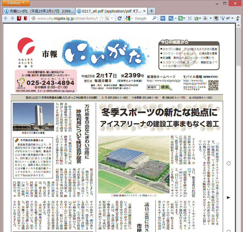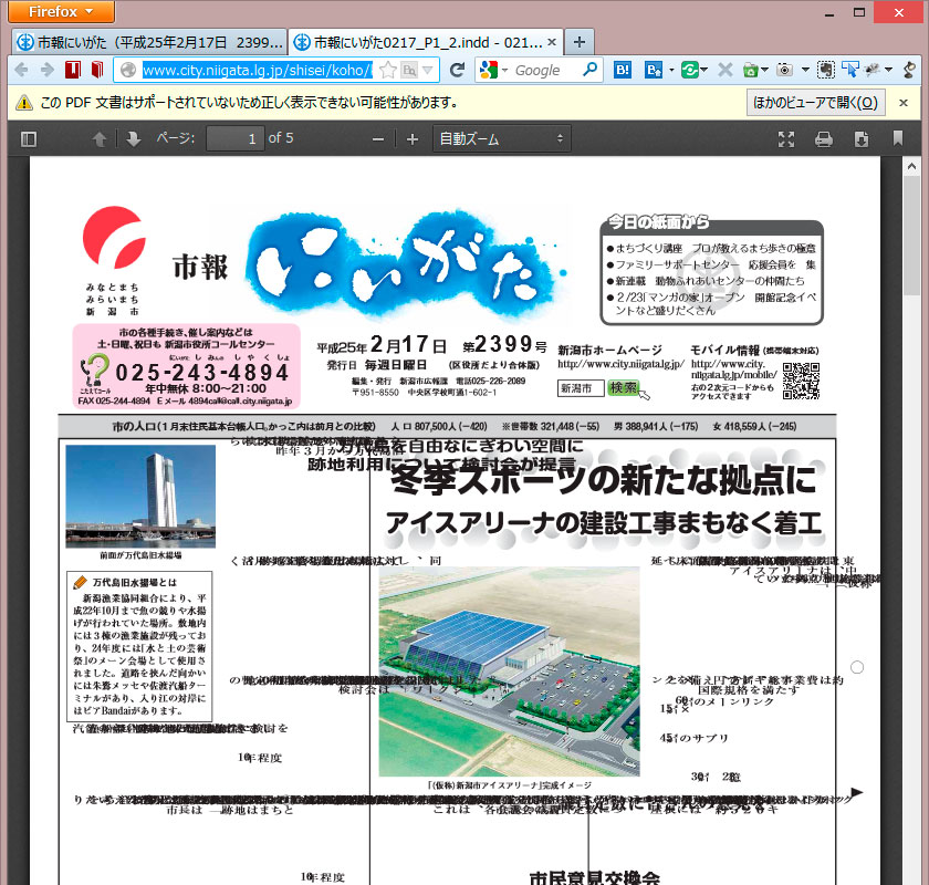 それでは先ほどの新潟市報を確認してみます。きちんと表示されていますね。