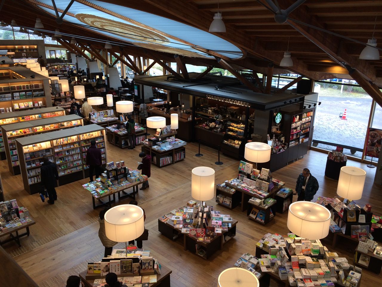 特徴1:スターバックスがテナントとして入居し、館内自由にお茶をしながら読書できる