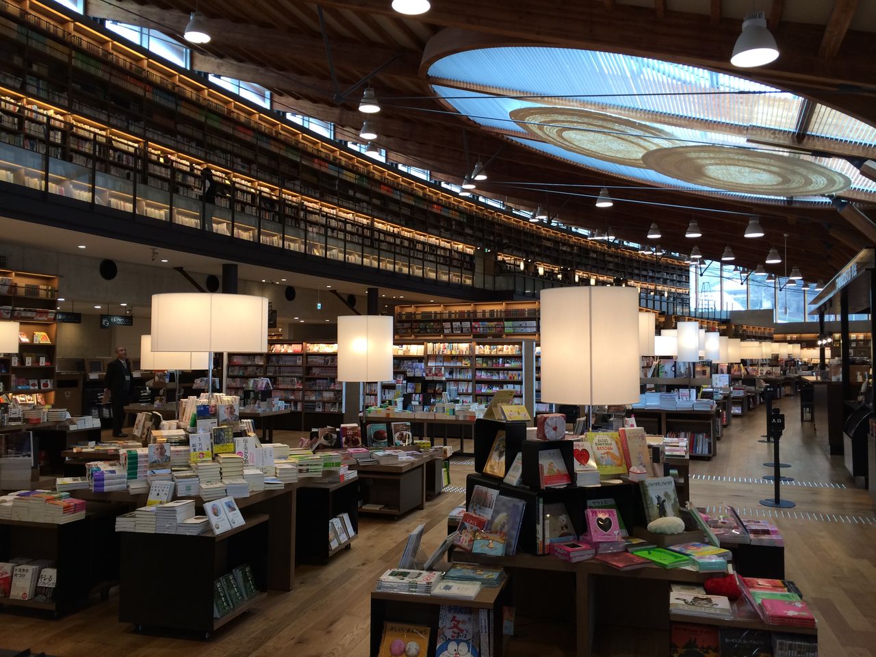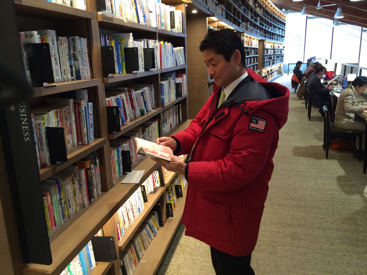 この自動貸出機が非常に使いやすく、秀逸です。司書の方は、本の貸出業務に要する時間を削減でき、その分、本来の業務である、本の探し方相談や調べもの相談に乗ることができます。なお、従前の図書館に所属していた15人の司書等スタッフは、継続してCCCに雇用され、(最低5年間は、同待遇を約束)現在も、図書館等運営業務に携わっているそうです。その他、目的外使用部分で、54人の新規雇用があるそうです。