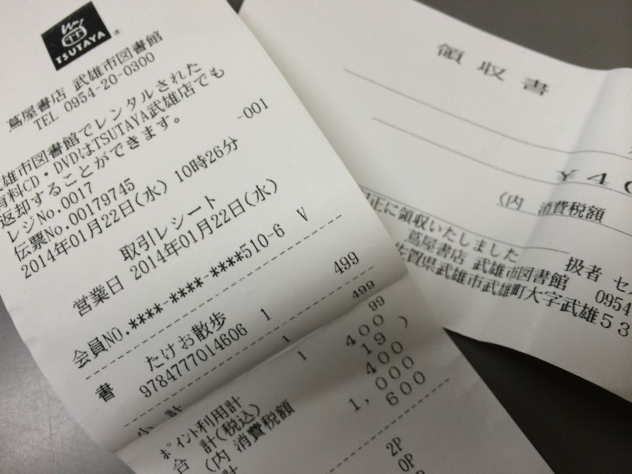 図書館の本を借りるのに、既存のTカードさえ持っていれば、新たに武雄市図書館カードを作る必要はありません(これ、びっくりしました)。持っていない方は、新たなTカードを作るか、Tカードでない普通の図書館カードを選択できますが、97%の利用者がT-カードを利用されているそうです。なお、利用促進のため、図書館利用1回(1日1回上限)につき、3ポイントのTポイントが付与され、Tカード提携店でその獲得ポイントは利用可能です(館内のスターバックスもTカード提携店なので、早速利用可能)。