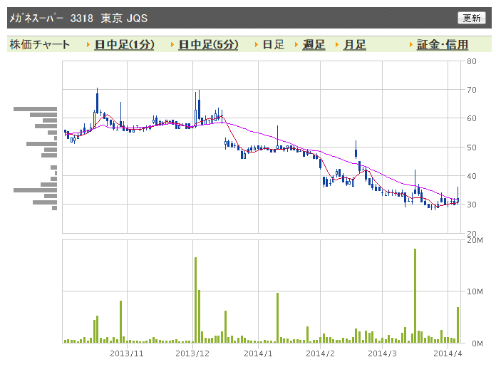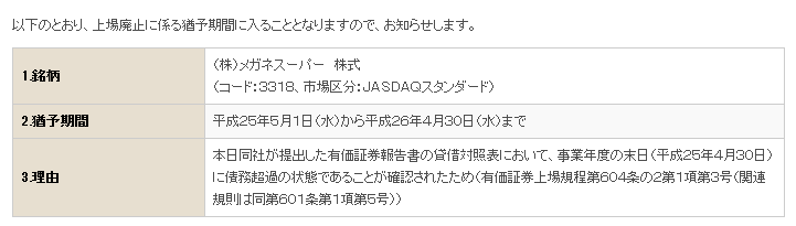 「上場廃止に係る猶予期間入り 平成26年4月30日(水)まで」http://t.co/6YOOnAaz0m
