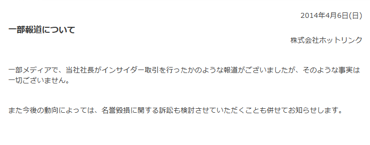 ホットリンクがインサイダーと言われておりますが、インサイダーというより、株価が確実に下がることが明確なので売りとばしたって感じでしょうか。 http://t.co/4j5iBYqkzw