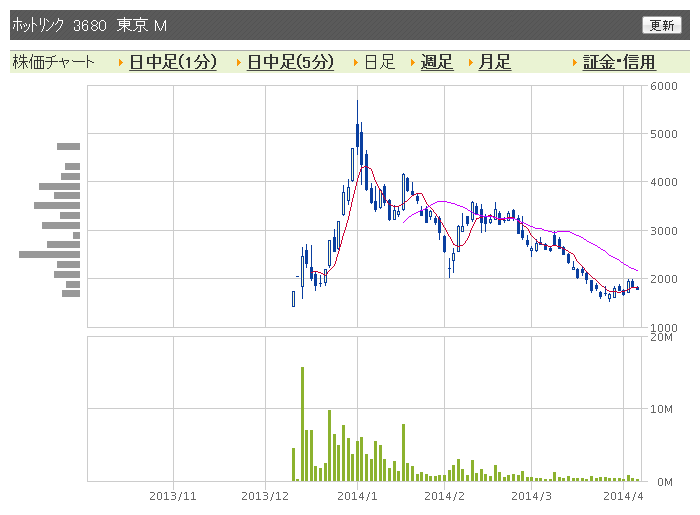 内山社長が2ch乗っ取られており、2chのデータ利用に思惑が→ホットリンクの企業価値に影響との思惑が→分割前8万株打って33.29%から26.99%へ株減少