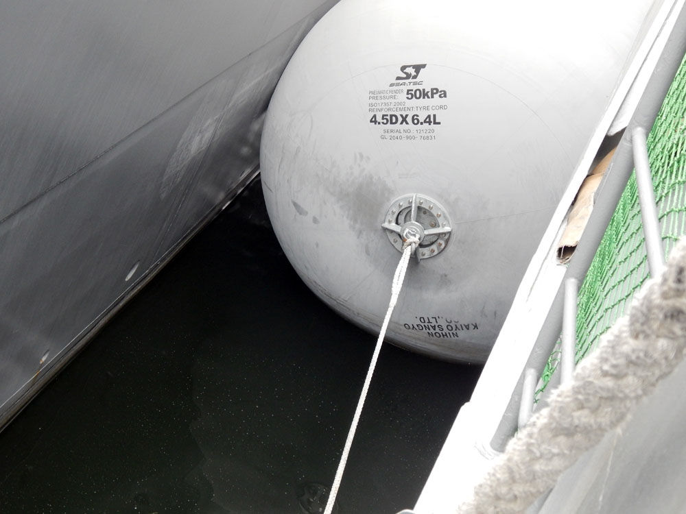 護衛艦との間に浮かんでいる緩衝材(?)
